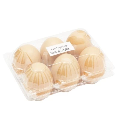 These hen egg carton plastic are ideal for retail purposes or for easy storage and organization in your fridge. The clear plastic allows you to instantly know how many eggs you have left to use and allows you to easily check for breaks and cracks. The duck egg cartons for 6 are the ideal empty packing boxes for farmers stands, roadside stands, hobby farm, and produce stands. These half dozen egg cartons measure 5.75 x 2.5 x 2.25 inches and are perfectly sized to hold a half dozen chicken eggs. You will receive 30 clear plastic egg cartons with date labels.Product names are trademark of listed manufacturer or other owners, and are not trademarks of eForCity Corp. The manufacturer does not necessarily endorse use of these products.