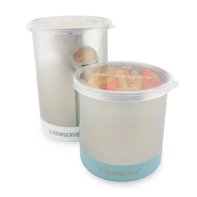 Buy in bulk, store in style! U-Konserve Bulk Stainless Steel Food-Storage Canister is the perfect store-to-counter solution for grains, nuts, baking ingredients and pantry staples. Leak-proof, airtight lids keep cereal, four, sugar, and coffee beans fresh. The durable containers are easy to take to the market, fill at the bulk bins, and display on your counter or stack in your pantry for more organized, less wasteful, kitchen food storage. Etched tare weights make the checkout process seamless. Reduce single-use plastic and avoid storing food in plastic with this plastic-free bulk canister solution. Easy to clean, dishwasher safe, freezer safe, and oven safe up to 300 degrees. Platinum-grade silicone clear-as-glass lids, with 18/8 stainless steel. 32oz (4.625”x 4.375” tall).