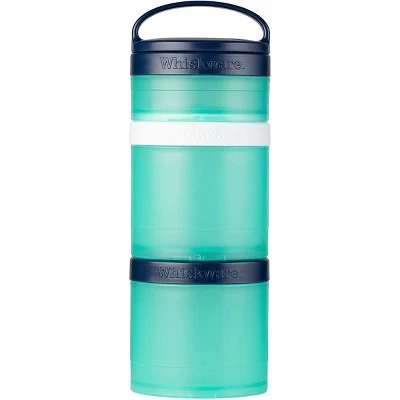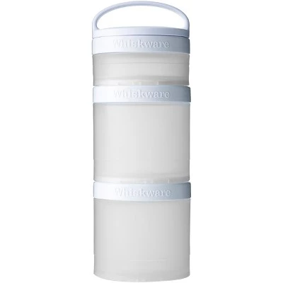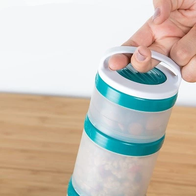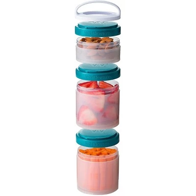 The Whiskware Stackable Snack Pack Containers are perfect for packing versatile, healthy snacks and lunches on the go. Say goodbye to plastic bags! These interlocking containers connect together with ease. Each set comes with three reusable containers: 1/3 cup, 1 cup, and 1 cup. Easily stash a stack in your carry-on, day pack or tote bag and you’re good to go! The removable handle allows for easy carrying or quickly attaching to your bag or packbag. Perfect for chopped fruit, vegetables, crackers, yogurt and more! All parts are top-rack dishwasher safe for easy clean-up. BPA and phthalate-free.