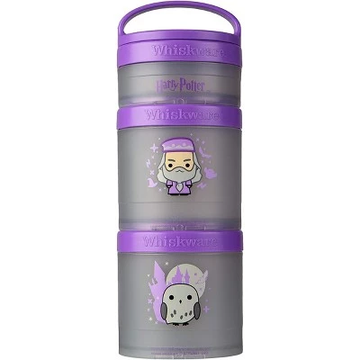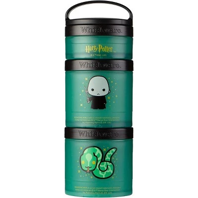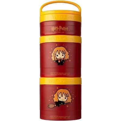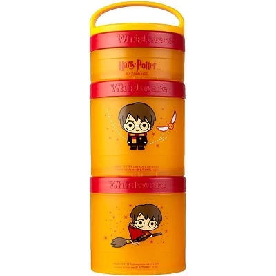 The Whiskware Stackable Snack Pack Containers get a Hogwarts makeover! Choose from your favorite officially-licensed Harry Potter graphics. These containers are perfect for packing versatile, healthy snacks and lunches on the go. Say goodbye to plastic bags! These interlocking containers connect together with ease. Each set comes with three reusable containers: 1/3 cup, 1 cup, and 1 cup. Easily stash a stack in your carry-on, day pack or tote bag and you’re good to go! The removable handle allows for easy carrying or quickly attaching to your bag or packbag. Perfect for chopped fruit, vegetables, crackers, yogurt and more! All parts are top-rack dishwasher safe for easy clean-up. BPA and phthalate-free.