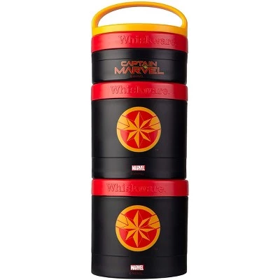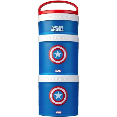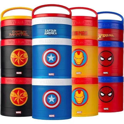 The Whiskware Stackable Snack Pack Containers get a superhero makeover! Choose from your favorite officially-licensed Marvel graphics. These containers are perfect for packing versatile, healthy snacks and lunches on the go. Say goodbye to plastic bags! These interlocking containers connect together with ease. Each set comes with three reusable containers: 1/3 cup, 1 cup, and 1 cup. Easily stash a stack in your carry-on, day pack or tote bag and you’re good to go! The removable handle allows for easy carrying or quickly attaching to your bag or packbag. Perfect for chopped fruit, vegetables, crackers, yogurt and more! All parts are top-rack dishwasher safe for easy clean-up. BPA and phthalate-free.