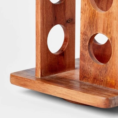 Efficiently organize your counter space with the Wood Rotating Spice Rack from Threshold™. Supported on a rotating base, this wooden spice rack provides you easy access to different spices, while ensuring maximum space utilization. Designed with 12 integrated slide-in spice jar slots in a wooden frame in a natural finish, this rotating spice jar rack blends with a variety of decor styles while bringing farmhouse-inspired charm to your kitchen aesthetics.