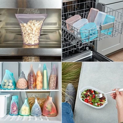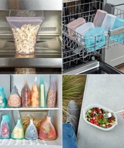 - Designed for easy use and cleaning: Single-piece construction with no glue or plastic sliders, Zip Top is the most durable and easy-to-use reusable container. The tops stay open and zippers do not overlap in the corners like normal zippers making it super easy to clean. Thick strong silicone will not tear or break keeping food fresh. No more lids!