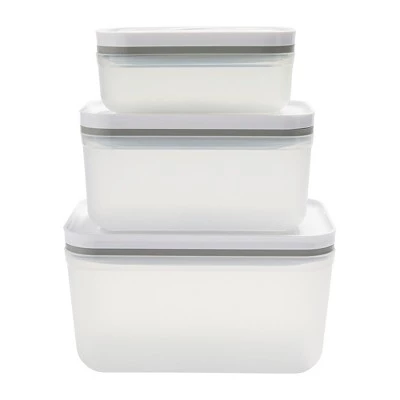 Eat healthier, save time, and store your food with long-lasting freshness with the new vacuum storage system: Fresh & Save. The exclusive Fresh & Save technology preserves flavors and nutrients, prevents freezer burn, and keeps food fresh up to five times longer than non-vacuum storage methods. Blending the power of a countertop vacuum sealer with the versatility of a handheld device, the cordless vacuum pump is fast, quiet, and easy to use. And thanks to its compact design, it will fit into any kitchen. We currently offer two starter sets available with vacuum pump, reusable BPA-free bags that are easy to close with a zipper attachment and are ideal for sous-vide cooking and microwave reheating, and either borosilicate glass or BPA-free polypropylene plastic containers. With the ZWILLING double sealing effect (most others only seal one surface) the containers shut tightly for super-fresh food. Whatโs more? The downloadable Culinary World app will track when you store food and when it will spoil, helping you to reduce food waste and save money. For a smart way to store food, choose Fresh & Save.